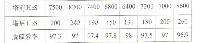 從上表可以看出,脫硫效率都在95%以上,基本上達(dá)到了濕法脫硫工藝煤氣含